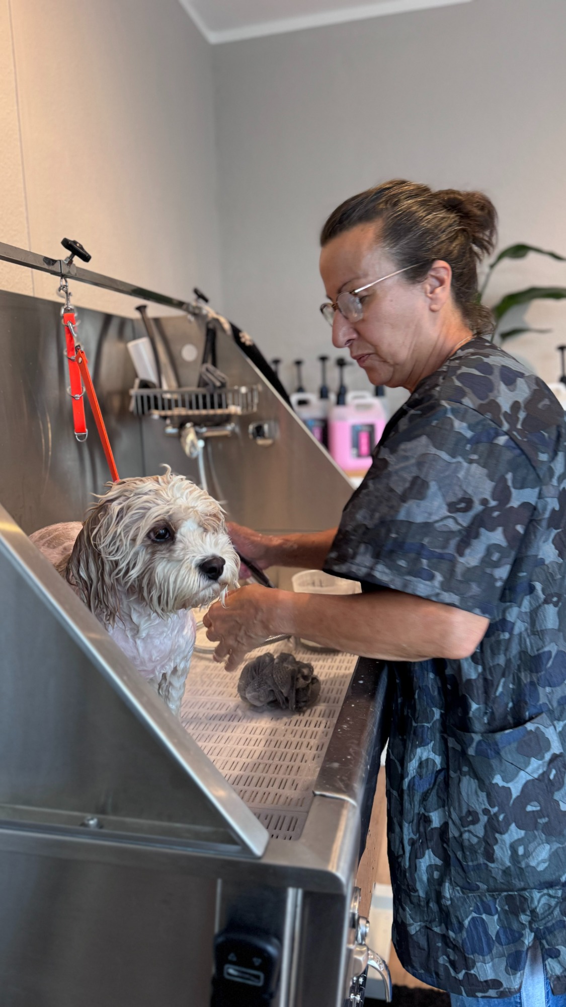 Sie übernimmt das Baden & Föhnen.